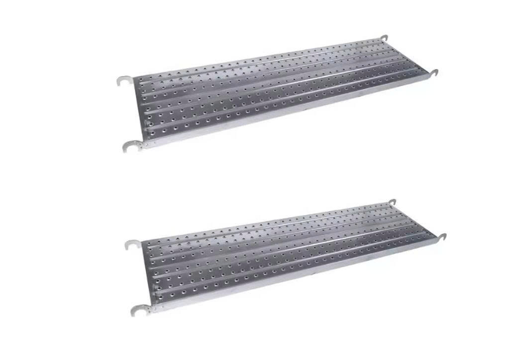 Mâm giàn giáo thường được làm từ thép tấm chịu lực, có độ dày từ 1.2mm đến 1.5mm. Bề mặt được dập gân hoặc đột lỗ chống trượt, phía dưới hàn gân tăng cứng giúp phân tán lực tác động đều và chống cong vênh. Hai đầu mâm có móc khóa để gắn chặt vào khung giàn giáo, đảm bảo cố định và an toàn trong quá trình sử dụng.